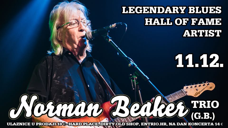 Stari majstor i poznanik hrvatske publike, legendarni britanski blues glazbenik NORMAN BEAKER ponovo dolazi sa svojim triom u Hard Place!!!